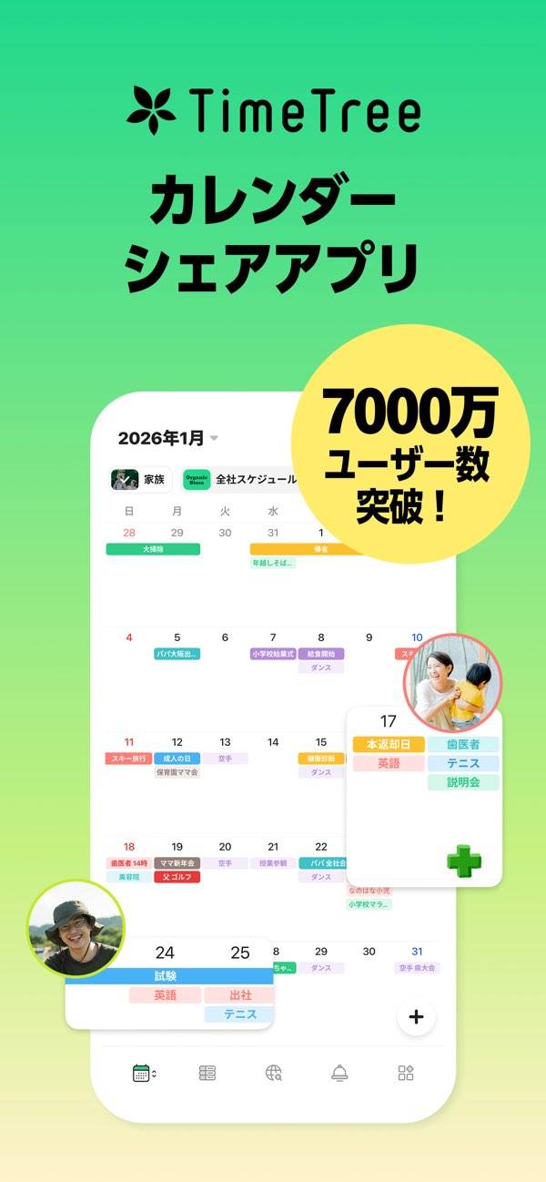 多くのカレンダーアプリが個人用で、作った予定をあらためて共有する必要があるところを、TimeTreeは予定作成と同時に自動的にカレンダー共有相手に予定を知らせることができます。