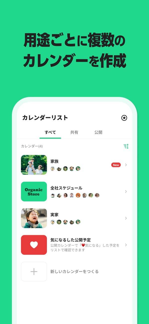 - 複数の共有カレンダーを作成でき、メンバーごとの予定整理に最適