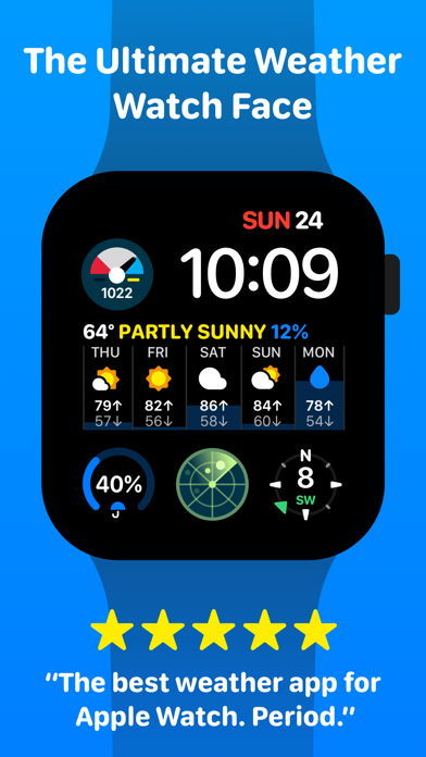1時間ごとの天気予報のほか、各種の気象情報が見られます。見える月の形や日没の時刻など、表示される情報は多彩。地域に出ている警報も逃さず表示でき、外出時に気をつけるべきポイントもわかるでしょう。すべて英語なので、やや読みにくいのがネック。