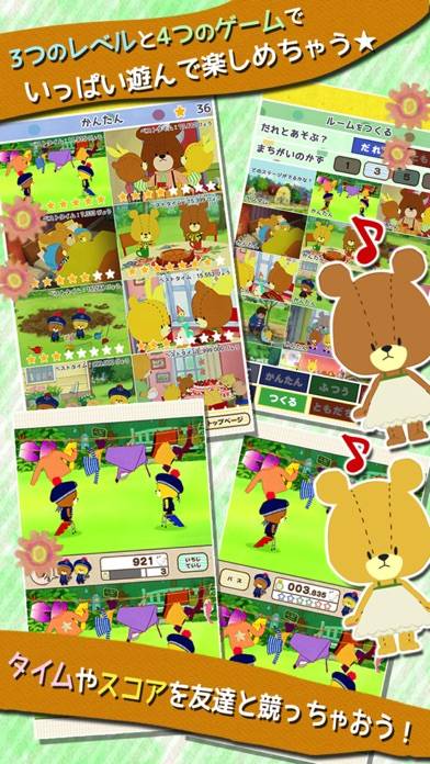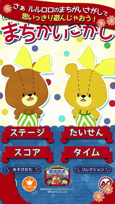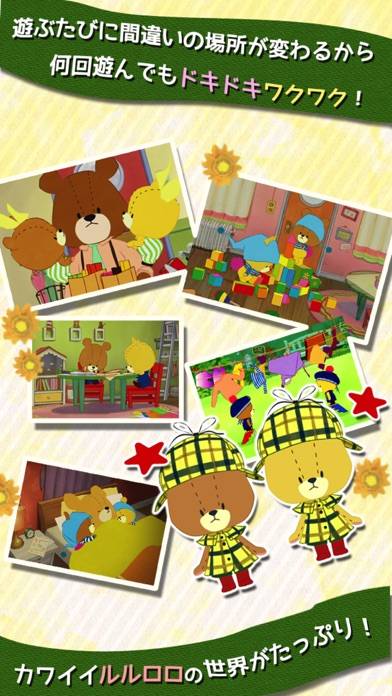 双子のくまさん“ルルロロ”がキュートな間違いさがしになりました。2枚の絵をじっくり見比べて間違いを探しましょう。遊べるステージが豊富に用意されている上に、毎回間違いの場所が変わるから何度でも遊べます。かわいいルルロロと長くお付き合い出来るのもうれしいですね。