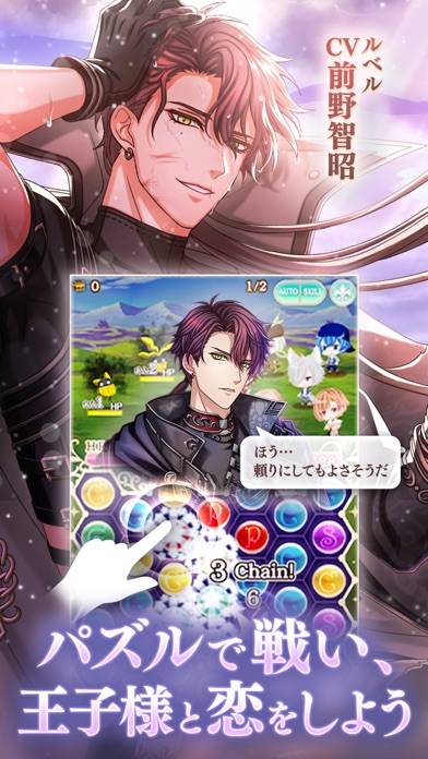 バトルパートでは3つ以上のピースをつなげて攻撃していきます。毎ターンごとに、10秒以内になるべく多くのピースをつなげ、王子たちの攻撃力を高めていきましょう。「お前、すごいな!」と戦闘中も褒めてくれる、彼らの優しい気遣いにキュンとします。