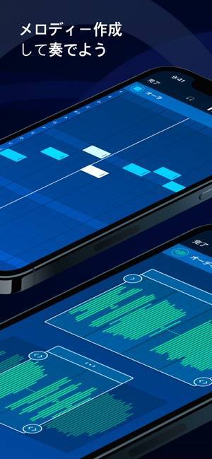タップ操作で音階を入力するだけで作曲ができるアプリ。シンセサイザー・ギター・ドラムなど、複数の音源を組み合わせて、本格的な曲作りを体験できます。機能は多いもののチュートリアルが用意されているため、繰り返し確認しながら使い方を覚えていけるでしょう。