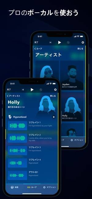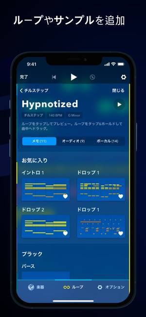 さまざまな楽器を選んで音を打ち込み、スマホ1つで作曲ができます。楽器の種類が充実しており、かつ1曲に組み込める音の数も多いので、創造性を存分に発揮できるでしょう。操作も手軽なため、初心者の私でも簡単に曲を作れました。サンプル楽曲が多いので、どんな音が作れるかを学びやすいのもポイントです。