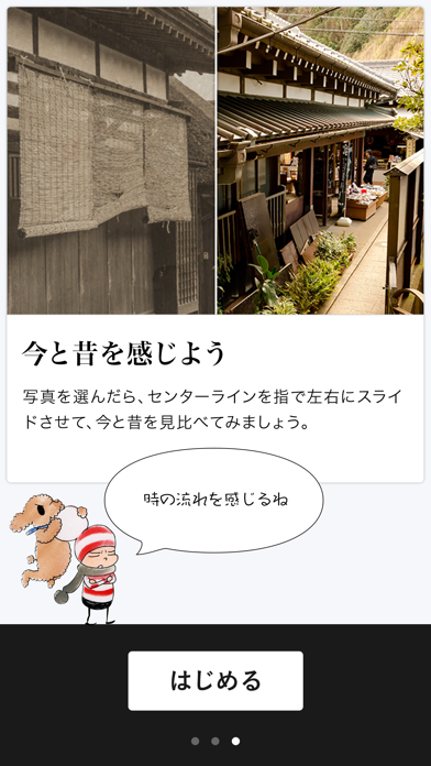 指で左右にスライドさせることで昔と今を簡単に見比べることができます。ただその場所の解説がない場合が多いのが残念なポイント。その場所の人々や風景を通して、さまざまな物語や人間模様を感じられるでしょう。