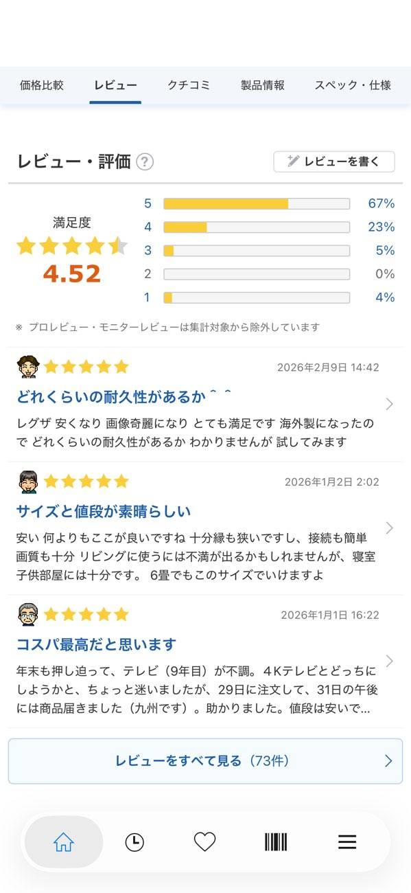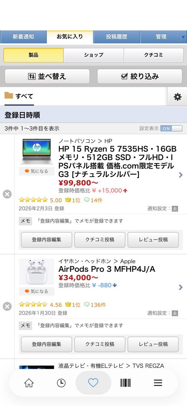 比較shopping必須ツール。最安値検索で家電購入時に大幅節約。ユーザーレビューも参考になるが、ステマの可能性も注意。価格変動グラフは購入タイミング判断に便利。ただし、特価情報の更新が遅いことも。通知機能で目当ての商品の値下がりを逃さず、お得に買い物できます。