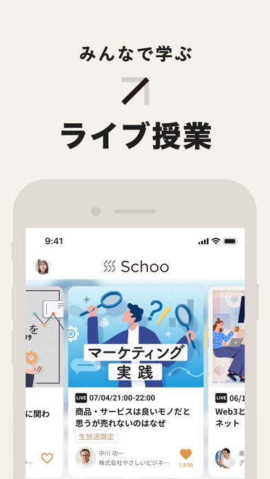 Schoo(スク―)では、「世の中から卒業をなくす」をミッションに掲げ、時間や場所の制限、つまらなさなど学びの障壁となるものを取り除き、誰でも楽しく学び続けられることにこだわっています。