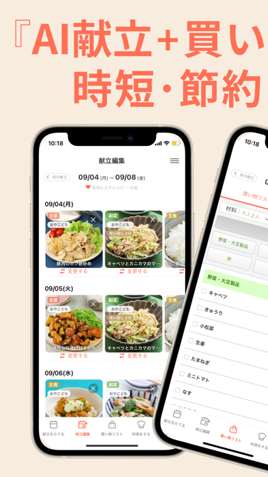 - 最長1週間の献立と、買い物リストを自動作成してくれる