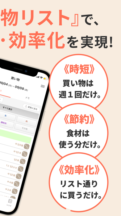 買い物リストも自動で作成されるので、紙や別のアプリにメモする必要がありません。