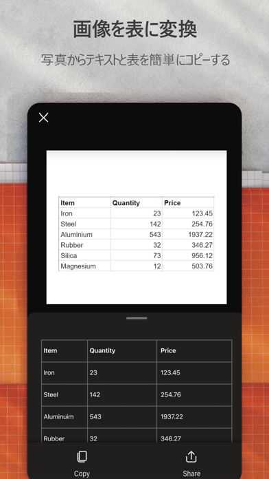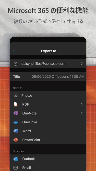 ノートやホワイトボード、メモなどに書かれた内容を簡易的にスキャンすることができるアプリです。スキャンデータは画像として保存したり、書いてある内容(文字やグラフ、図など)を認識してドキュメントに変換することが可能です。