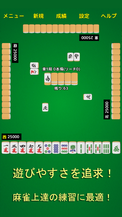 シンプルなオフラインの4人打ち麻雀です。本アプリでは、勝率や和了り役のカウントなどを記録してくれるため、自分の打ち筋の研究にもなります。