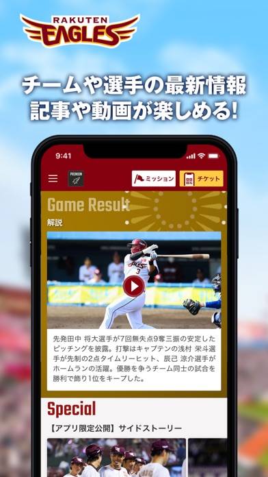 楽天イーグルスの選手情報やアプリ限定記事などがチェックできるアプリ。観戦ガイドやスタジアムでのQRチケット表示など、便利な機能が揃っています。さらにグッズやチケットに利用できるお得なクーポンまで獲得可能。楽天イーグルスファンなら、必須級のアプリです。