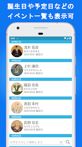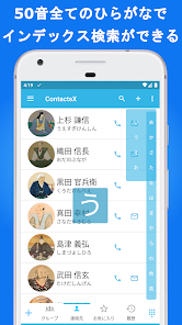 五十音順で名前が並ぶ日本語のインデックス表示に対応しており、たとえば「さ」で始まる人の名前だけをすぐに見られます。押しやすい大きな文字や、必要な情報だけが表示される画面なので、どこを見ればいいのかわかりやすく、探す手間も少なくなります。