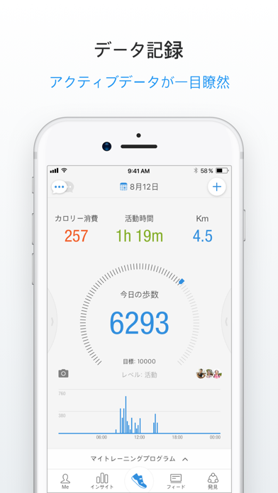 毎日の運動や食事を記録しつつ、同じ目標を持つ人と交流できるダイエットサポートアプリ。歩いた距離や消費カロリーをすぐに確認できて、運動量の変化も一目で分かります。