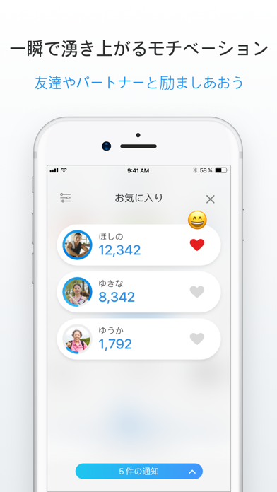 達成した日には褒めてもらえる演出や、フィードで仲間とつながれる仕組みがあり、一人では続けづらい運動も楽しく続けられますよ。