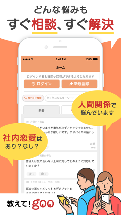 教えて!goo 匿名で質問や悩みの相談ができる質問アプリ