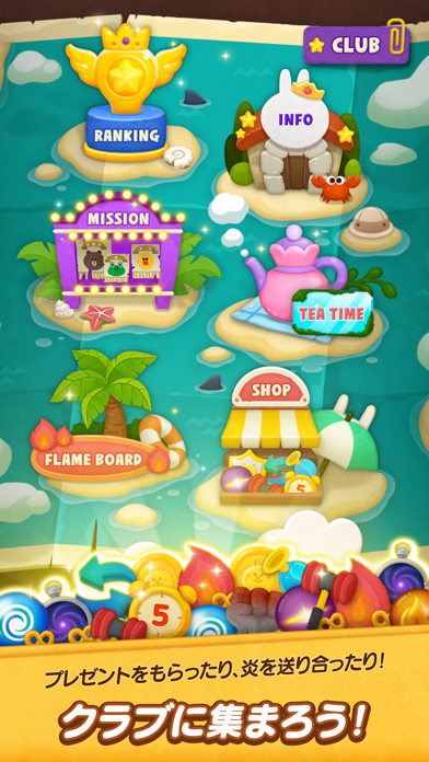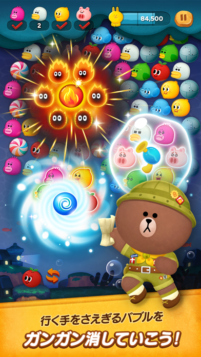 かわいらしい仲間たちが、クリアの手助けをしてくれます。LINEではおなじみのブラウンやコニー、サリーなども登場。ガイドラインを延長してバブルを正確に飛ばしやすくしてくれるなど、手厚くサポートします。