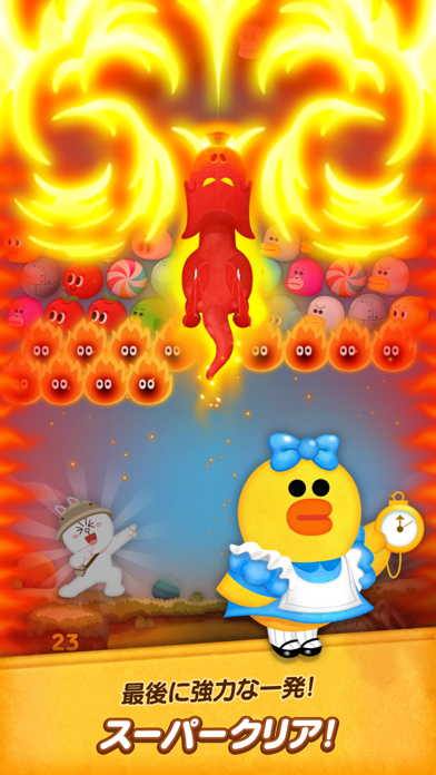 かわいらしい仲間たちが、クリアの手助けをしてくれます。LINEではおなじみのブラウンやコニー、サリーなども登場。ガイドラインを延長してバブルを正確に飛ばしやすくしてくれるなど、手厚くサポートします。