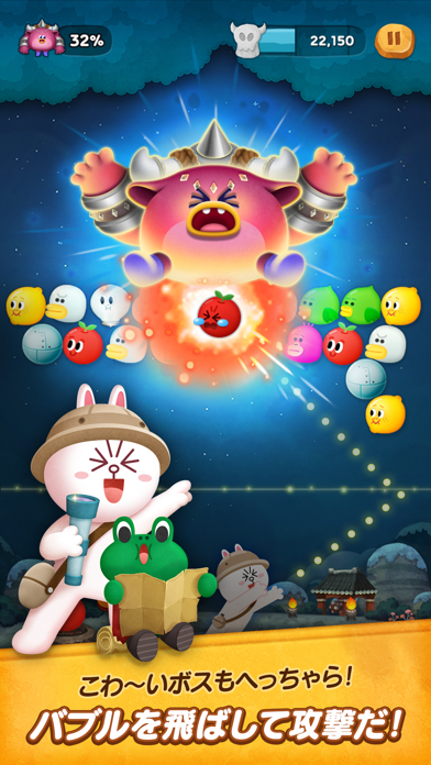 『LINE』のキャラクターが登場する人気シューティングパズルゲーム。バブルを上に投げて、同じ種類のバブルを消してステージクリアを目指します。