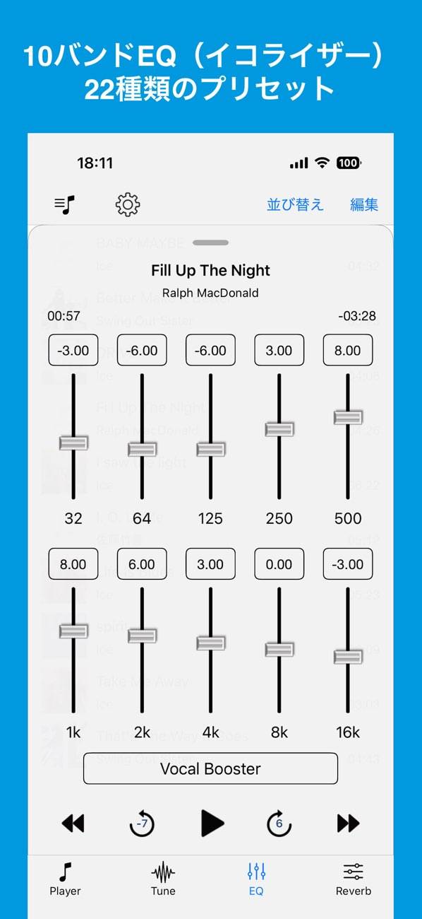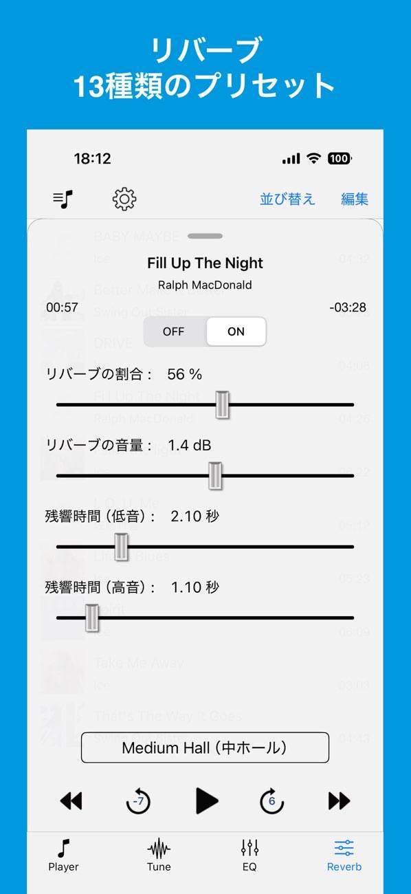 楽曲の速度とピッチを、それぞれ個別に変更できるプレーヤーアプリ。速度を変えても音程はそのままなので、聞き苦しさがなく、また音程をしっかり聴きたいときにも便利です。ボーカル音声も消せるため、耳コピの際に活躍してくれるでしょう。