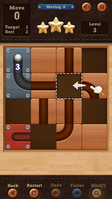 木目調のピースを並び替えて、ボールをゴールまで運んでいくパズルゲーム。