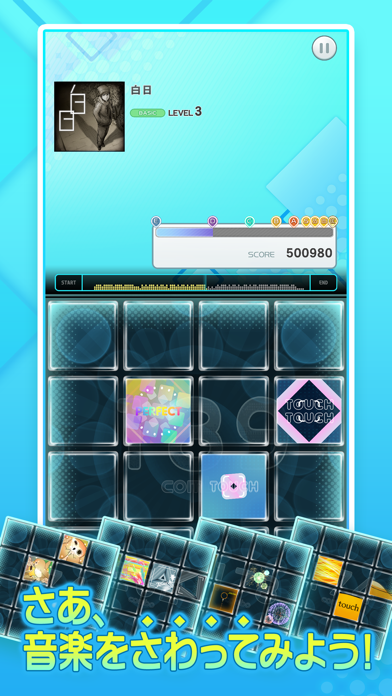 遊び方はいたってシンプル。アーケード版と同じように、曲に合わせて光る4×4マスのパネルを、タイミングよくタップしていきましょう。音に合わせて何かを描いていくような感覚が、クセになるリズムゲームです。