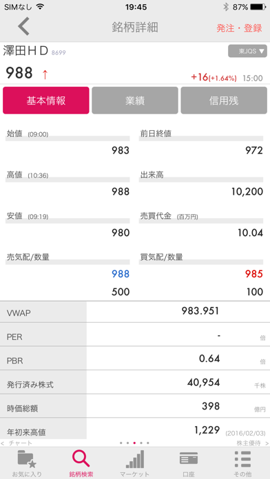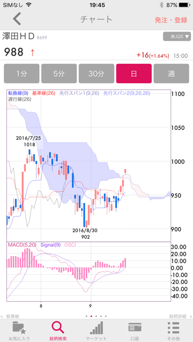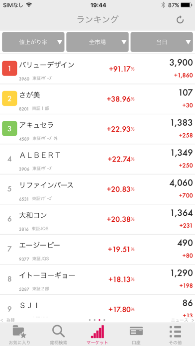 毎日更新される「相場格言」というコンテンツが面白いです。「噂で買い、事実で売れ」というような格言が載っています。噂が流れた段階で株価が上がり始め、事実として公表された段階ではすでに多くの人が保有している、という意味の格言です。心に留めておいたら良いことがありそうですね。毎日使いたい株取引アプリです。