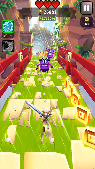 ブリムの街を駆け抜ける爽快ランアクション。敵も味方のキャラもカートゥーンな感じで幅広い世代に楽しめそう。道は険しく崖があったり、木の根っこもあったりするので全く気が抜けなくて夢中になるゲームです!