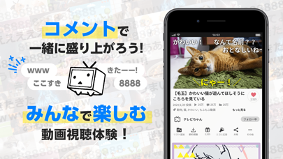 弾幕のように流れるコメントが特徴的。コメントは誰でも気軽に投稿できます。また表示位置やフォントカラーなどは自由に設定可能。1人ひとりのコメントが動画を、さらに盛り上げていきます。動画を視聴して、コメントを残すことで、一体感を感じられるのが本アプリならではの魅力のひとつ。