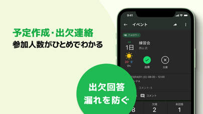 チームスポーツの情報を簡単に管理できるアプリ。フィードに試合内容や写真など乗せる事もでき、プッシュ通知もメンバーに一括で送れるので、出欠確認がスムーズ。野球などまだ未対応のスポーツもありますが、スコアボードの作成も可能です。是非共有ツールとして使ってみてください。