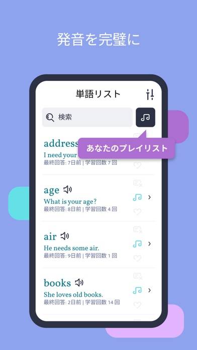 - 学習した単語を発音と一緒に振り返ろう。使い方も学べる