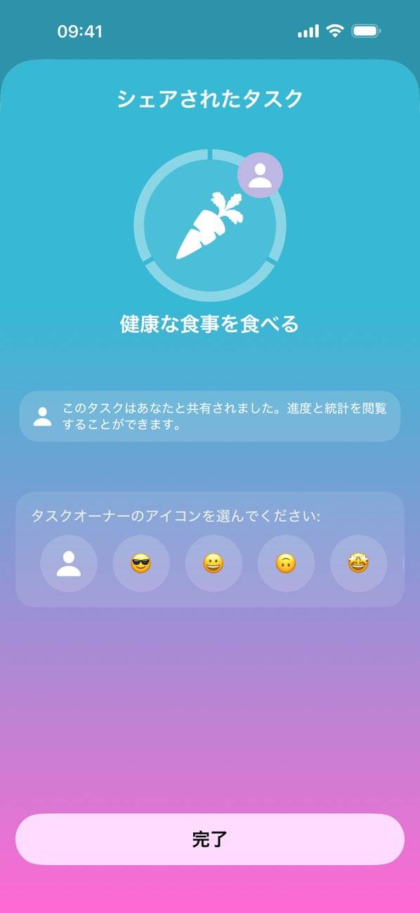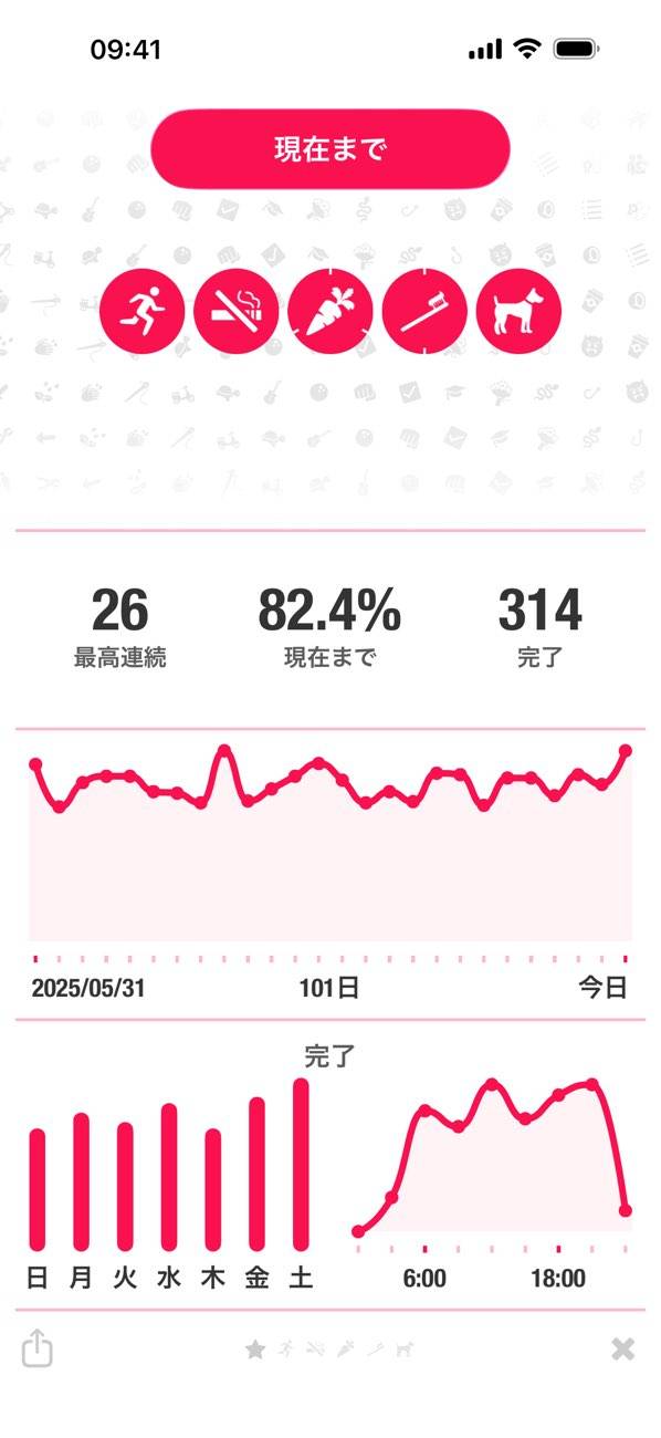 毎日のタスクを登録しておき、達成状況を確認できるアプリ。ゴミ出しや掃除といった家事から、運動や食事などの健康づくりまで、幅広いルーチンを管理できます。画面に並んだアイコンの表示で、各タスクの状態もひと目でチェック可能です。