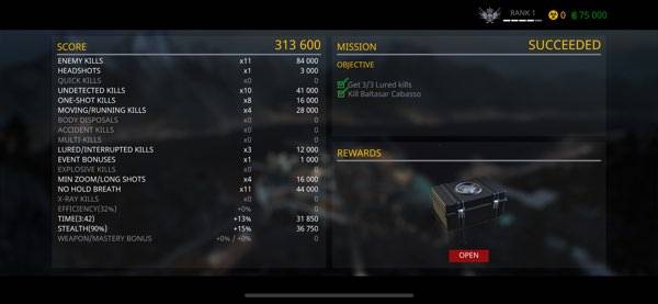 ターゲットに気づかれないように周りの敵から倒していくとボーナススコアがもらえ、様々な銃やスキルを使って、より有利にミッションをクリアしていけるようになります。