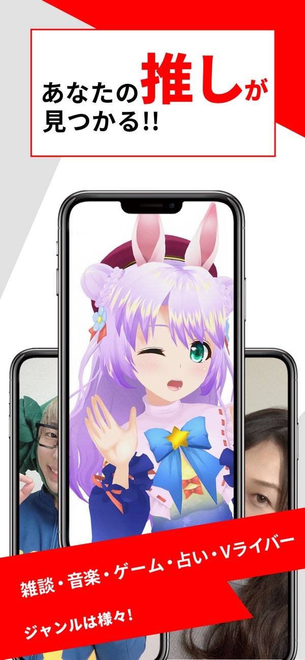 - 雑談、歌、ゲーム、アニマルなど豊富なジャンルの配信が楽しめる