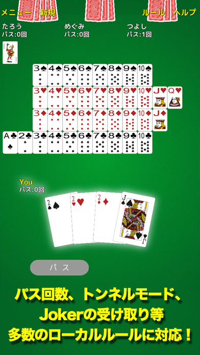 - トンネル、ジョーカー等のルール調整可能。ローカルルールを設定できる