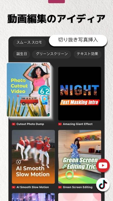 | エフェクトの種類 | グリッチ、フェード、ぼかし、ビートなど |
