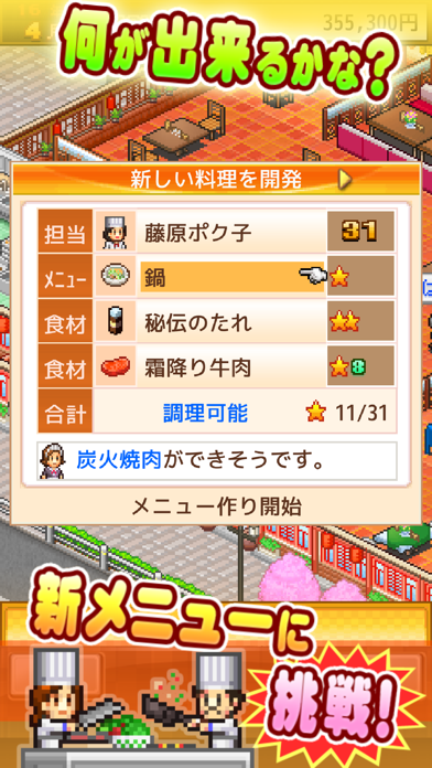 - メニュー開発・人材育成など、本格的な経営シミュレーションゲーム