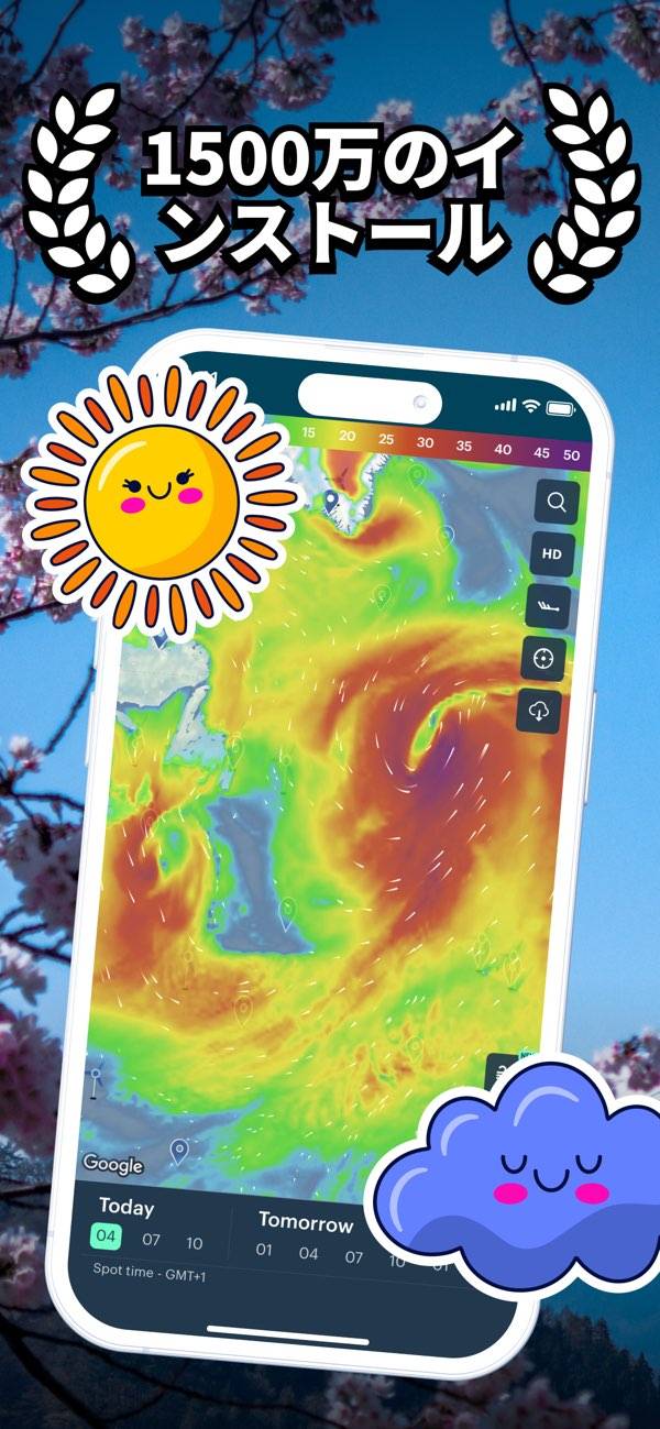 10日先までの天気がわかるので、レジャーの計画を立てるのに役立ちます。3時間ごとの詳細な風や天気の予報が見られて便利。1つの画面で風や気温、降水量などさまざまな情報を把握できます。