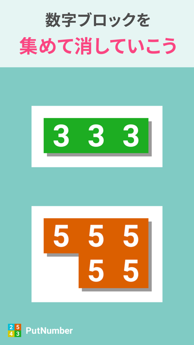 同じ数字が書かれたブロックをつなげて消していきます。ただし、ブロックの数字と同じ数だけブロックを並べないといけません。パズルを続けると、数字の大きいブロックが登場して難易度もアップ。