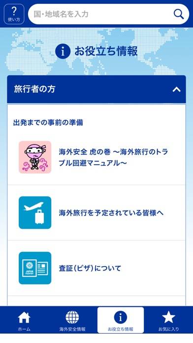 海外旅行をする際には絶対に入れておきたいアプリです。テロや山火事など一目で今起こっていることを確認することができます。事前にメール登録をしておけば、旅行先での知りたい情報をより詳しく教えてくれます。このサービスのおかげで安心して海外旅行を楽しむことができました。