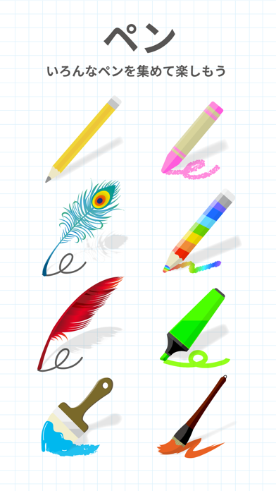 - えんぴつ・クレヨン・口紅など、25種以上のペンで、飽きずに楽しめる
