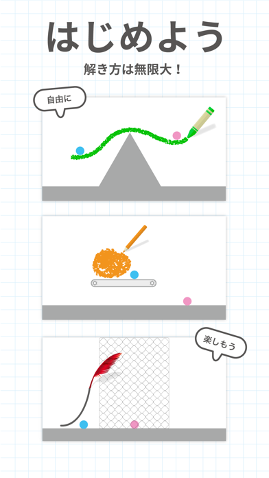二つのボールがくっつくように自由に絵を描く物理パズル!解けたときが気持ちいいし、頭使ってるって感じを味わえます(笑)シンプルでオシャレなデザインもお気に入りです♪