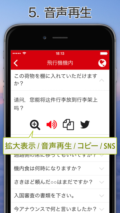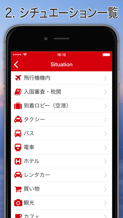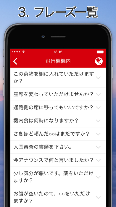 - 実用フレーズが約200種類。空港やホテルなどで活躍するアプリ
