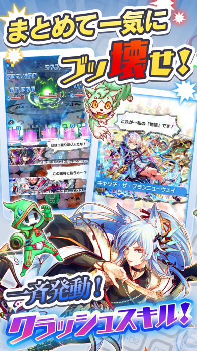 ブッ壊し!ポップRPGというのが売りの爽快パズルゲームです。キャラクターのスキルを使ってパズル盤面を一気にクラッシュ。ランクの低いキャラクター達も可愛く、かっこよく描かれていてとてもいいです。