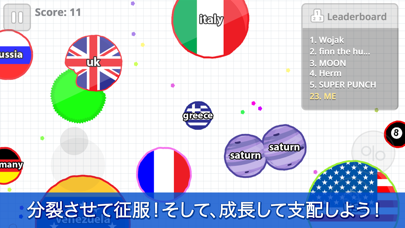 このアプリでは、リアルタイムで世界中のプレイヤーと対戦できます。小さな生物「セル」を操作し、ほかのプレイヤーを吸収して自分の「セル」を大きくするのが目標。リアルタイム対戦機能により、熾烈な戦いを楽しめます。