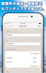 - 喫煙所の設備・感想が書ける。お気に入りの喫煙スポットが見つかる