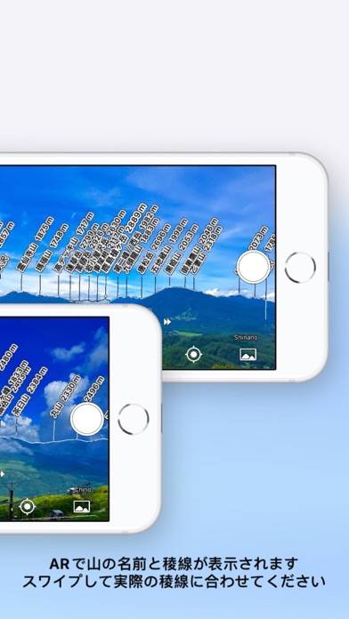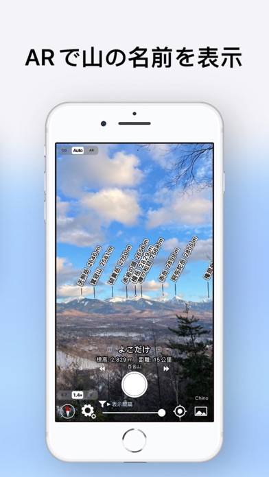 現在地を中心に360度の山々の名称と標高がわかります。しかもAR表示モードにすると、スマホカメラのリアル映像上に山の情報が表示されます。実際の映像をもとに確認できるので、登山やハイキング時には、方角を把握するのにも役立つでしょう。