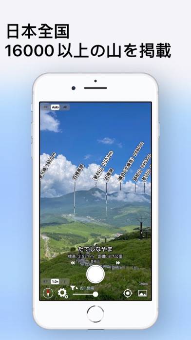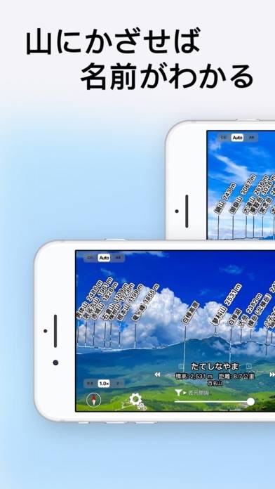 - スマホをかざすと、前方にある山の名前・標高・距離がわかる