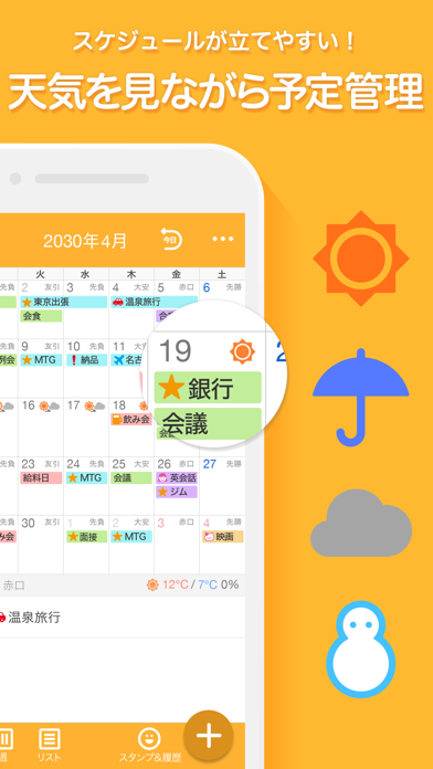 1週間の天気を見ながら、3秒で予定を入力 死角なしの万能カレンダー