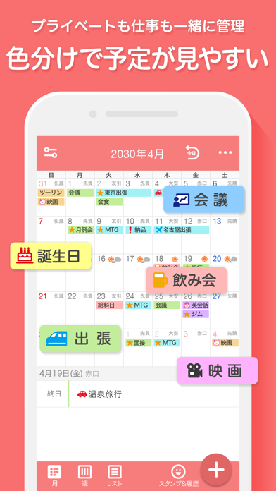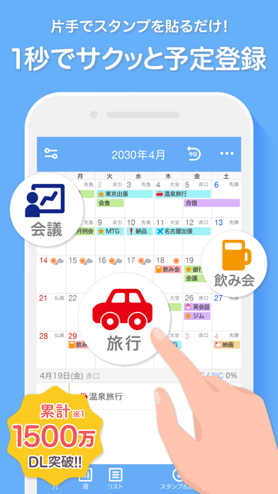 - スタンプを貼るだけ。忙しくてもたった3秒で予定入力完了
