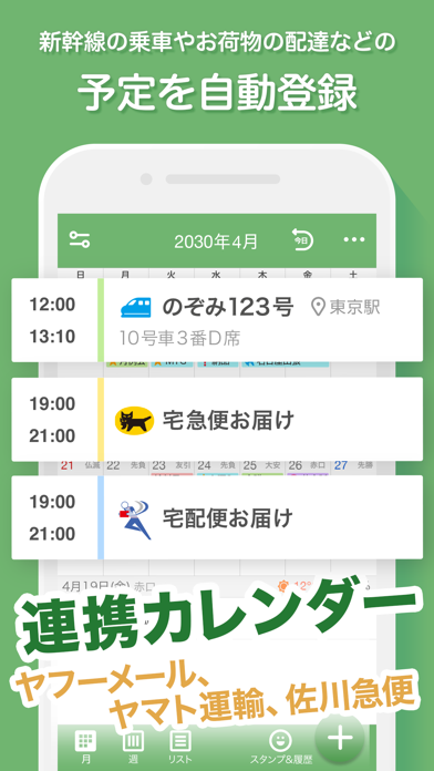 ブラウザ版と同期可能なカレンダーアプリです。予定を入力したいときはスタンプを貼るだけでOK。かなり手軽にスケジュール管理できます。
